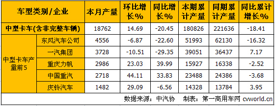 中型卡車(chē)產(chǎn)銷(xiāo)情況: